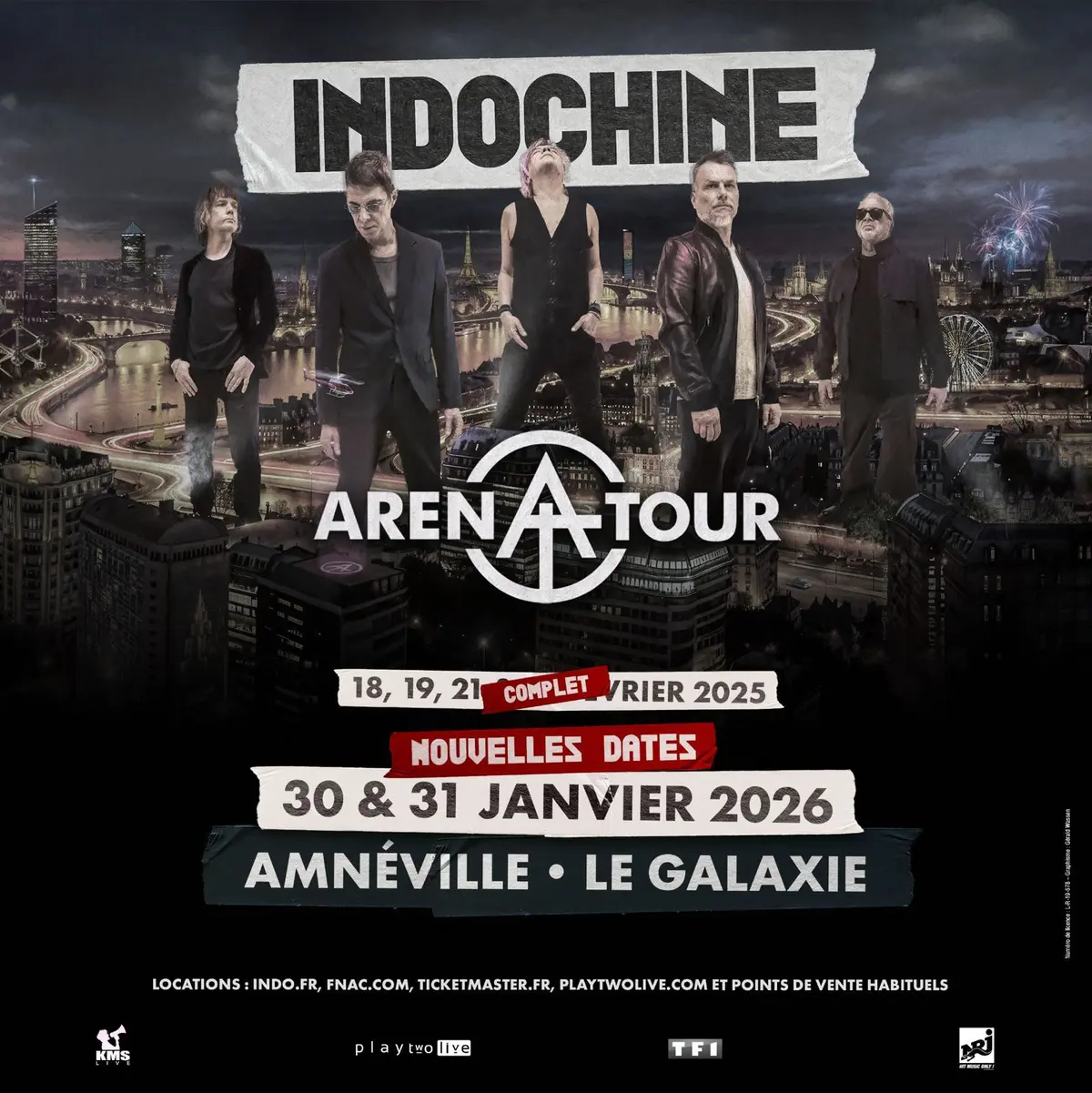 Indochine ajoute deux nouvelles dates au Galaxie d’Amnéville ! Face à une tournée 2025-2026 déjà archi complète et à une demande qui explose, le groupe mené par Nicola Sirkis revient en Lorraine les vendredi 30 et samedi 31 janvier 2026. Deux soirées supplémentaires qui promettent d’afficher complet en un clin d’œil.