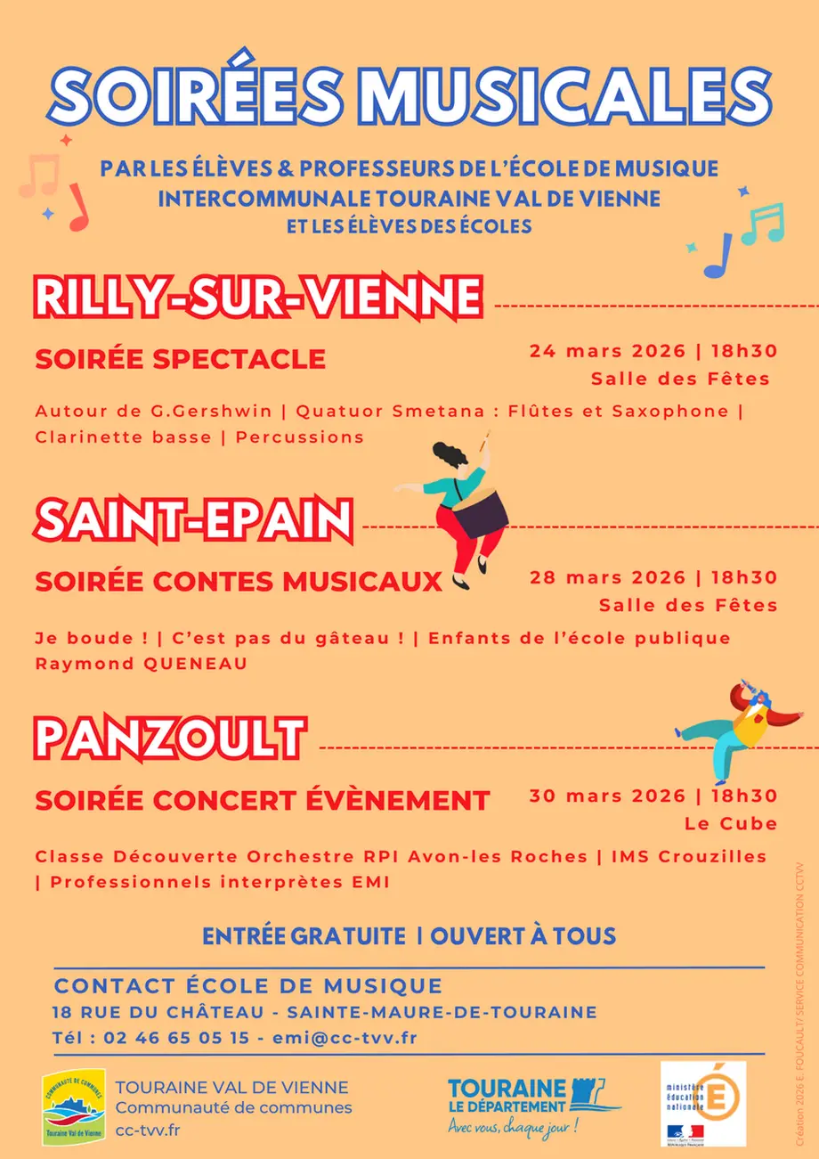 Les élèves et les professeurs de l’EMI (École musicale intercommunale) Touraine Val de Vienne, ainsi que les élèves des écoles du territoire, ont prévu ces concerts pour vous !