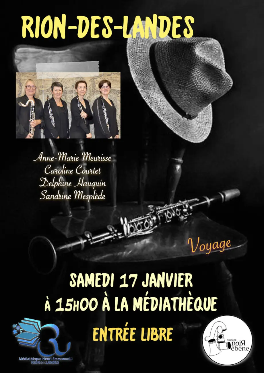 Le quatuor Noir Ébène vous propose de venir poser vos valises à bord de son avion pour voyager au son de la clarinette.