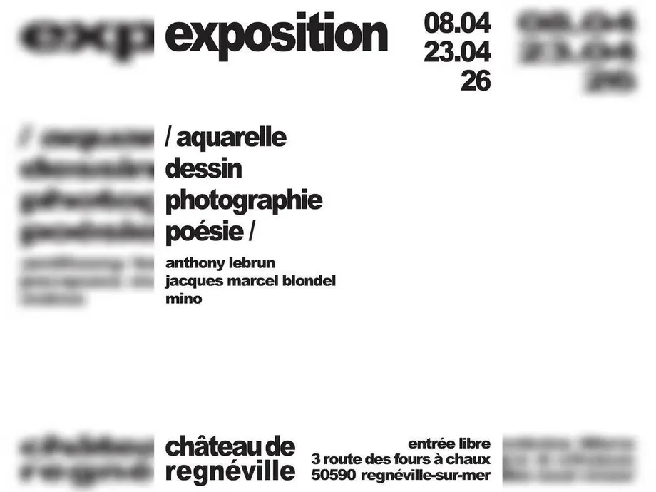Exposition aquarellesDu 27/04/2026 au 03/05/2026Regnéville-sur-MerExposition d’aquarelles