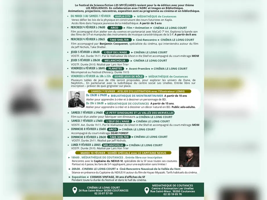 Festival de Science-fiction "Les Mycéliades"Jusqu'au 15/02/2026 CoutancesFestival LES MYCÉLIADES 2026 du 31 janvier au 15 février.