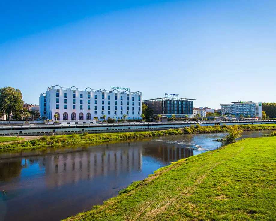 Découvrez ces deux établissements emblématiques, si différents au premier abord et pourtant si complémentaires… Le SPLENDID, luxueux hôtel des années 1920, et les THERMES, résidence signée Jean Nouvel.
