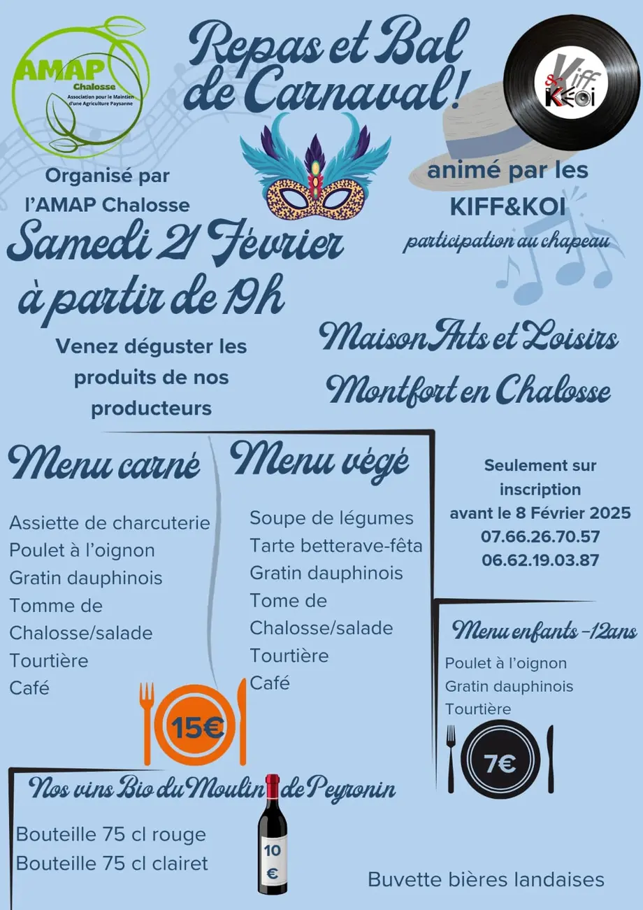 20h : Repas de l’AMAP à la Maison Arts et loisirs (15€)