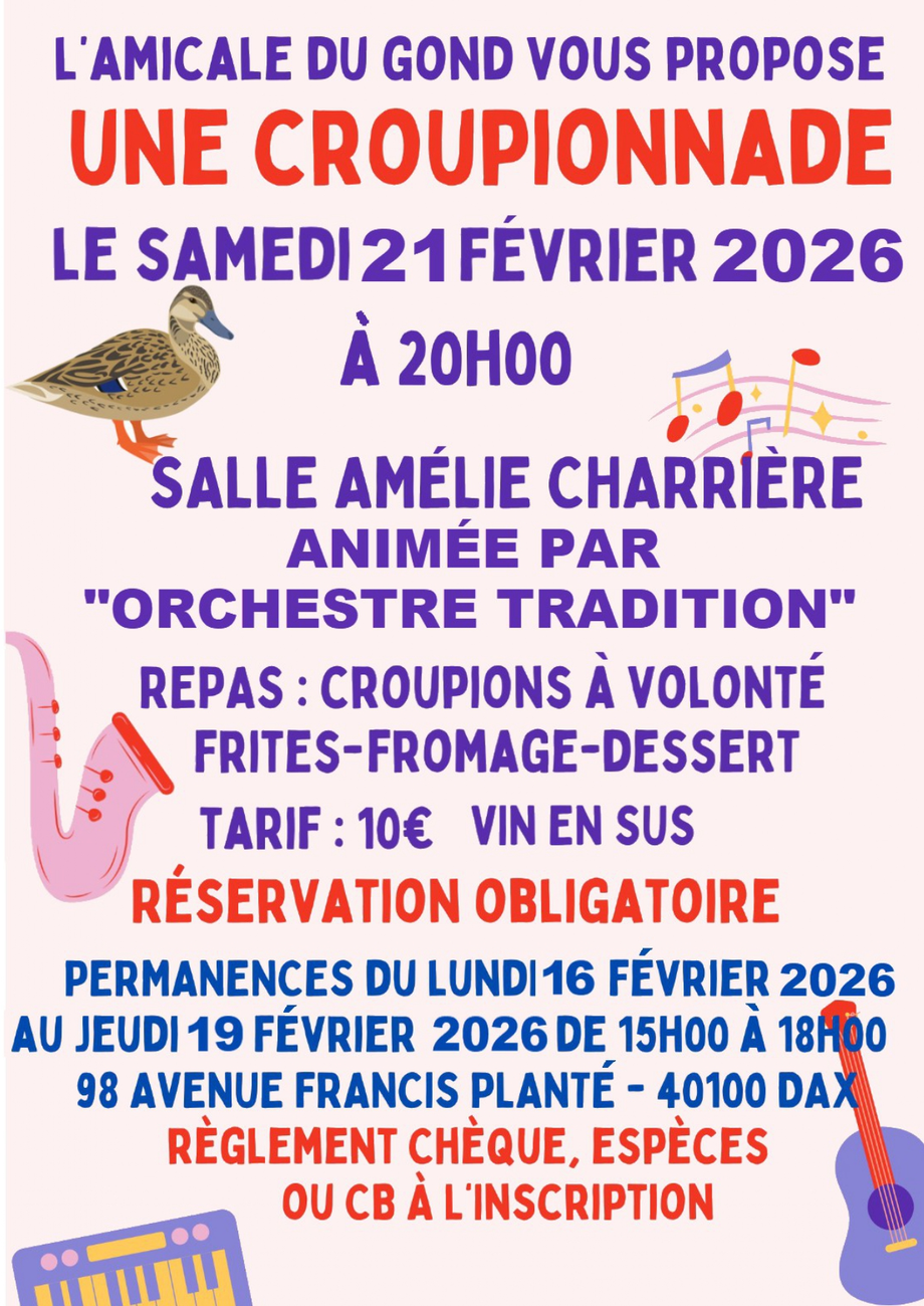 Cet événement a été renseigné par un organisme institutionnel (OT Grand Dax). Date de dernière mise à jour le 19/01/2026.
