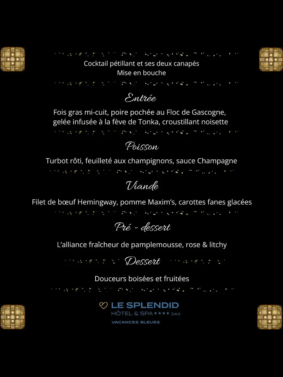 Réveillon Saint SylvestreLe 31/12/2025 DaxLe 31 décembre 2025, le restaurant du Casino de Dax vous propose un menu gourmand dans une ambiance cosy.