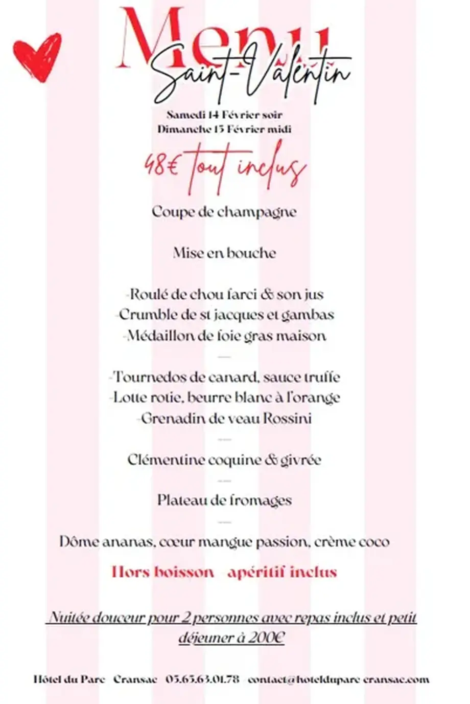 Menu de la Saint Valentin à l'Hôtel du Parc