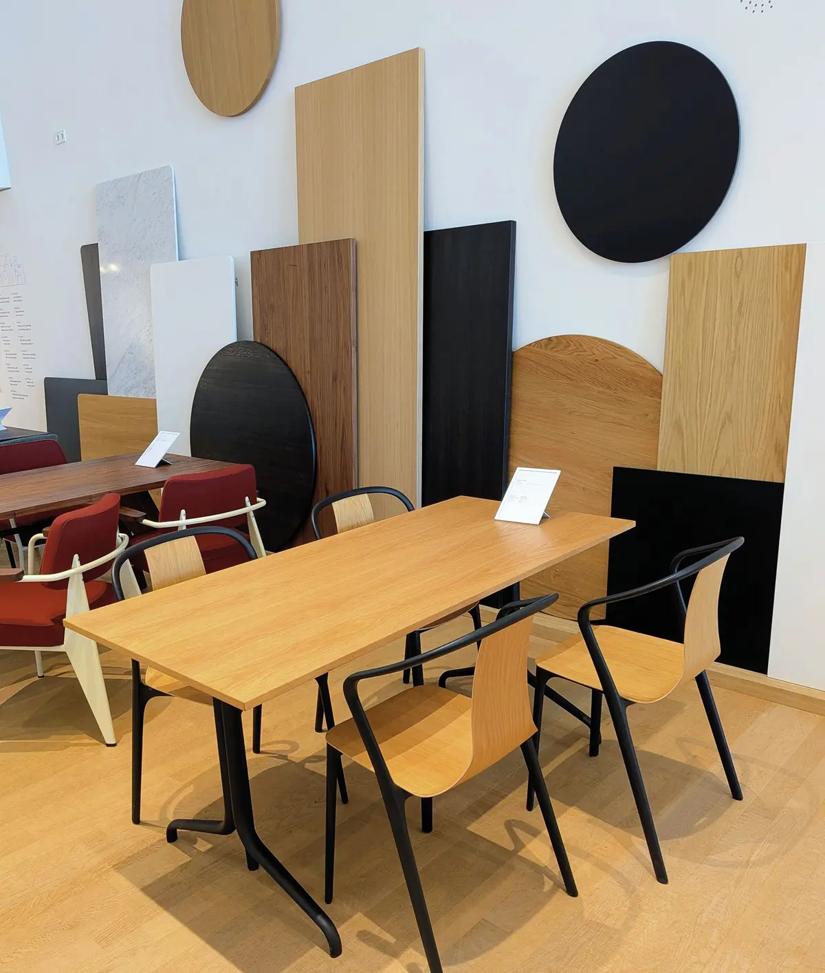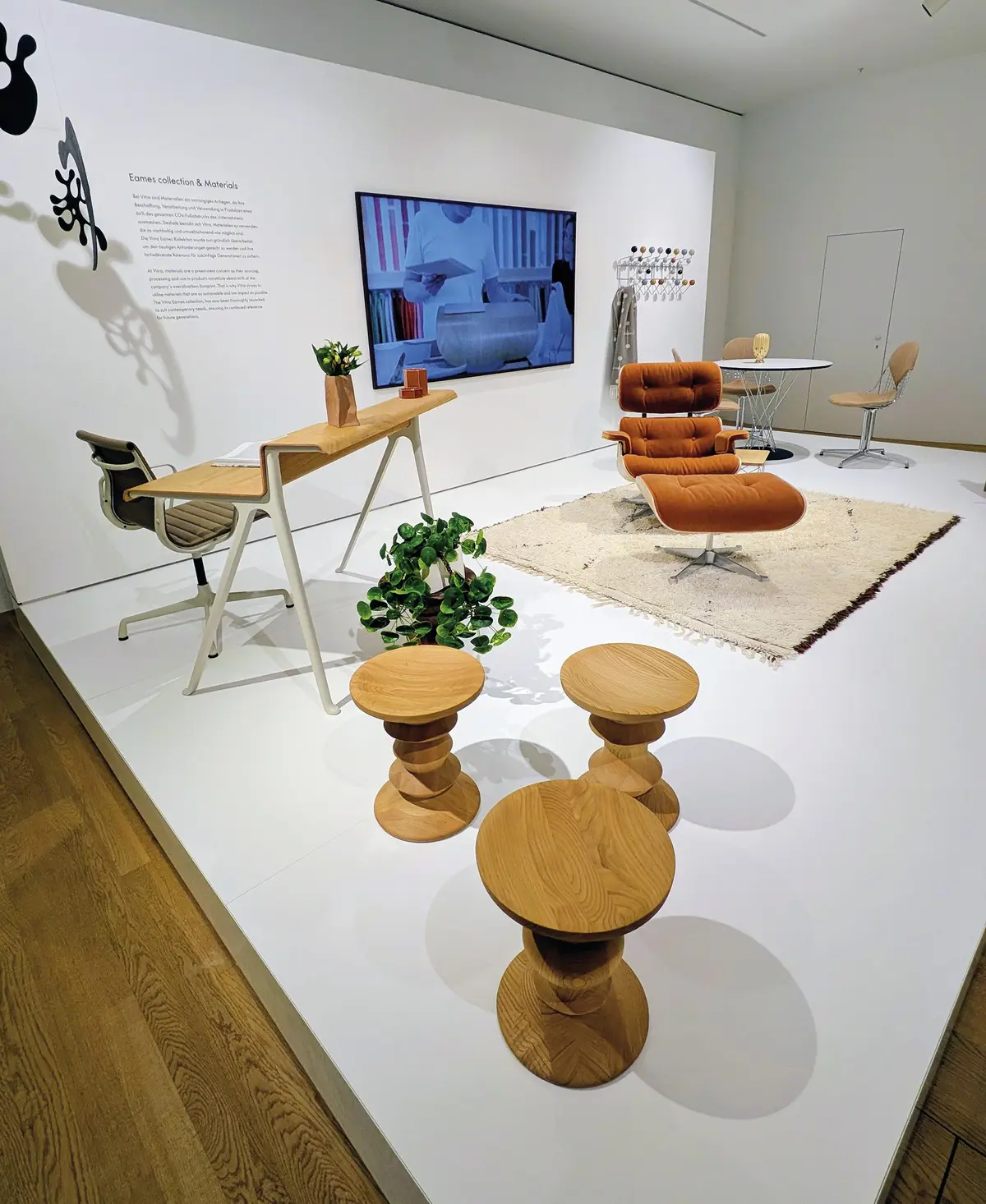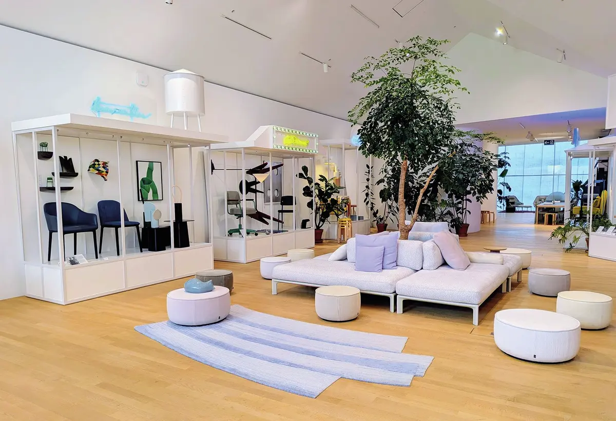 À l'intérieur, le ton est donné immédiatement : ni musée solennel, ni magasin traditionnel. La circulation se fait de pièce en pièce, comme lors de la visite d'une maison contemporaine... ou de la célèbre enseigne suédoise. Un salon largement ouvert sur le paysage, une salle à manger aux lignes épurées, un coin lecture plus feutré… Les meubles ne sont pas alignés pour être regardés, ils sont installés pour être vécus, déjà en situation.