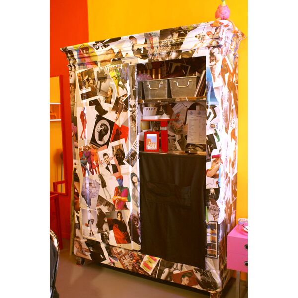 Spécialiste en la matière, Frédéric Schirmer a relooké entièrement son Boudoir Excentrique mulhousien à coups de système D, en investissant un minimum d’euros. Parmi ses créations, une extraordinaire armoire personnalisée, version magazine de mode. «Elle traînait dans un grenier depuis cinquante ans, mais le bois était en bon état. L’avantage avec les meubles anciens, c’est qu’ils sont solides ! Je l’ai simplement nettoyée au savon noir, avant de passer un coup de colle à papier peint et d’appliquer des photos de mode en papier glacé déchirées dans des magazines. Encore un coup de colle par-dessus, et éventuellement du vernis en bombe pour finaliser, et en une journée, l’armoire était métamorphosée», explique Frédéric.