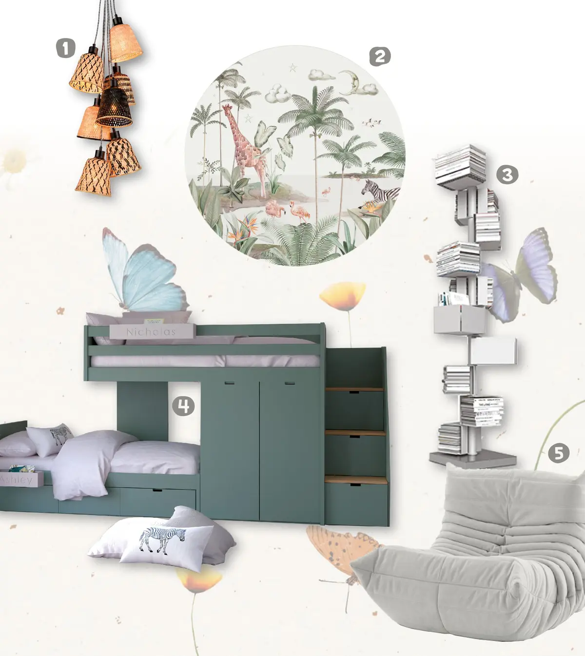 2. Rond de fantaisie, un magnifique motif jungle XXL tout en rondeur à afficher sur les murs d'une chambre d'enfant. Boutique Forty Winks à Mulhouse.