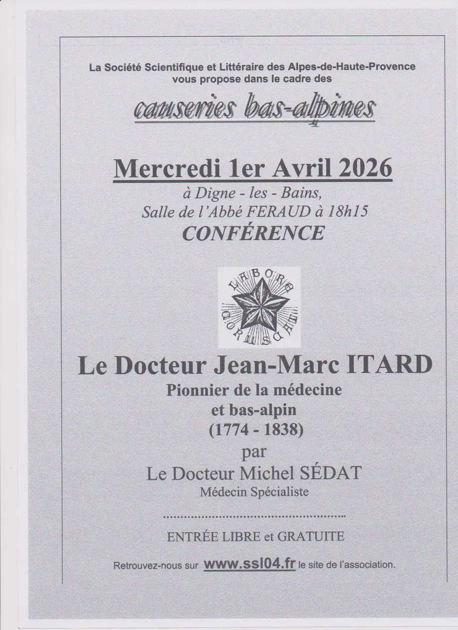conférence organisée par la société scientifique et littéraire dans le cadre des " causeries bas-alpines "