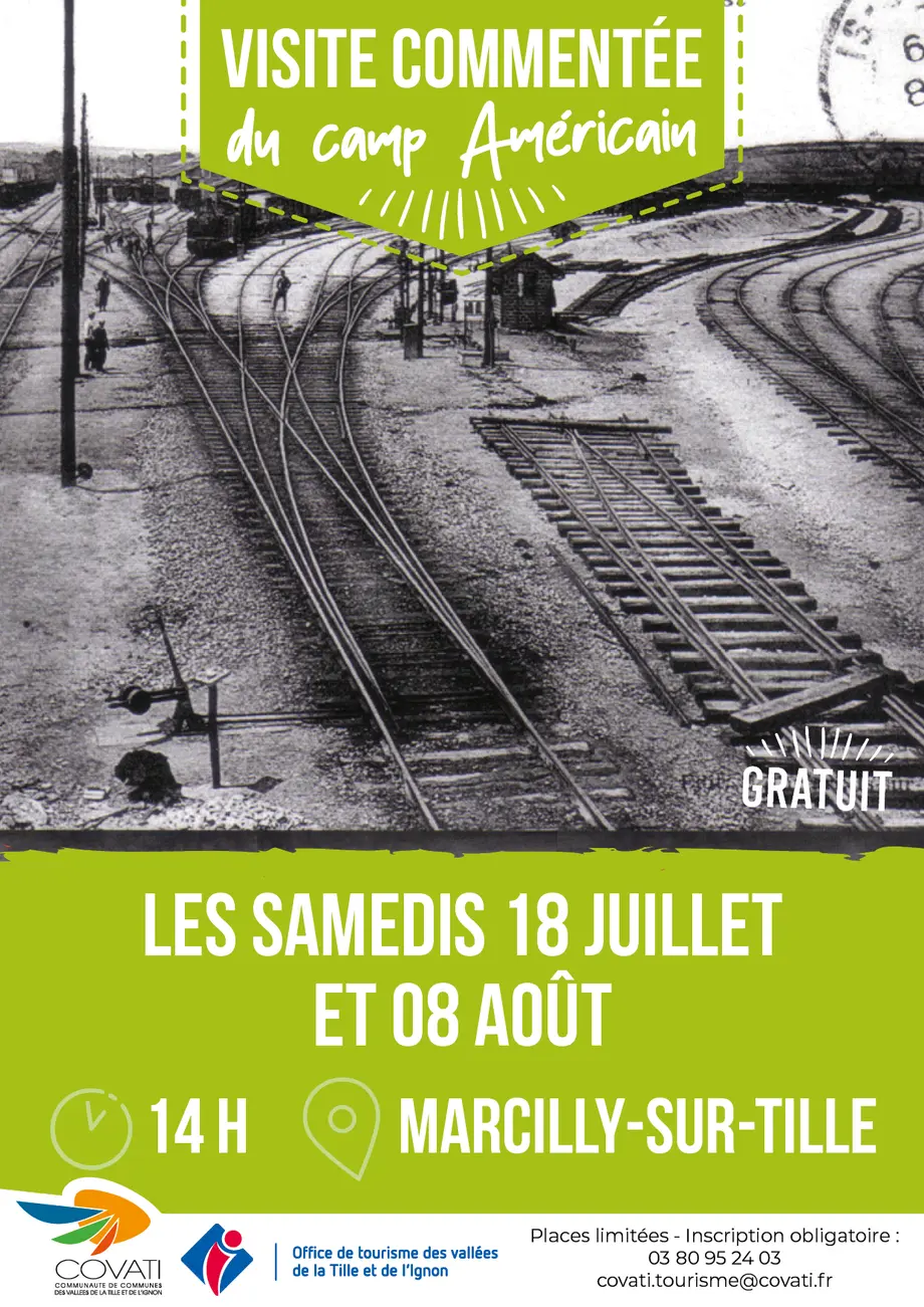 Cette visite, organisée par l'Office de Tourisme et commentée par deux membres de la Société d'Histoire Tille Ignon, vous invite à découvrir l'histoire du camp américain, aujourd'hui disparu (1917-1919), au départ de Marcilly-sur-Tille.