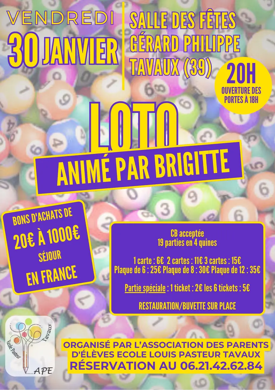Super lotoLe 08/02/2026 MouchardL'ouverture des portes se fera à midi, vous pourrez alors vous installer et manger votre pique-nique.