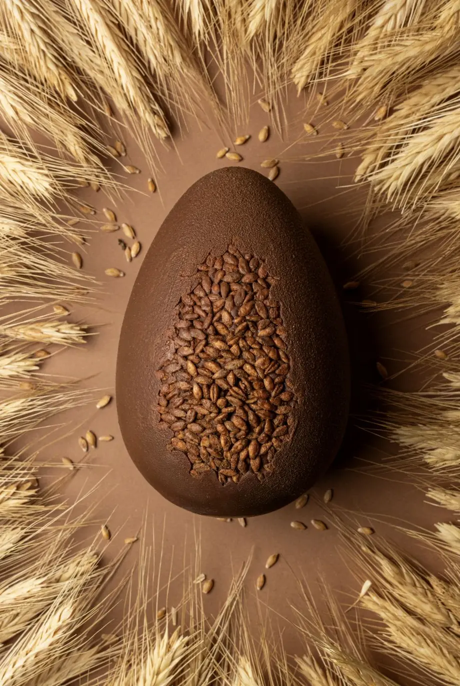 Cette année, le chef Raynal revisite l’iconique œuf de Pâques à travers une création aussi graphique que gourmande. Entièrement réalisé en chocolat, cet œuf dévoile en son cœur un éclat de grains d’épeautre, comme une matière brute qui affleure à la surface. Véritable hommage à cette céréale ancienne et au travail du blé, la pièce célèbre la richesse des ingrédients simples qui inspirent les plus belles créations pâtissières. Le contraste entre la douceur du chocolat et la texture des grains évoque à la fois le terroir et la gourmandise. À la fois objet de dégustation et pièce esthétique, cet œuf de Pâques se contemple autant qu’il se savoure : une création originale à partager en famille, posée au centre de la table comme une véritable œuvre chocolatée.