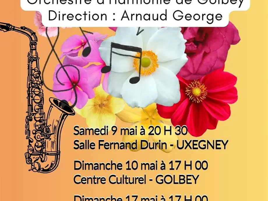 concerts de printempsLe 09/05/2026UxegneyL’Orchestre d’Harmonie de Golbey vous donne rendez-vous pour ses Concerts de Printemps autour des plus grandes musiques de films !