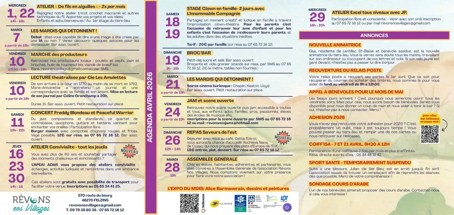Festival à trois temps à CardaillacDu 19/04/2026 au 03/05/2026CardaillacÀ l’initiative d’habitantes et d’habitants de la commune, un festival est organisé sur trois dimanches consécutifs, du 19 avril au 3 mai, à la salle […]