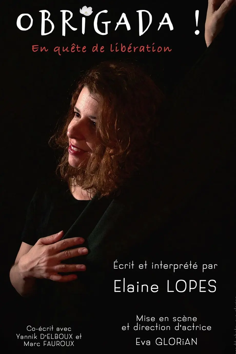 « Obrigada ! » est un seul-en-scène écrit et interprété par Elaine Lopes. Comédienne et chanteuse brésilienne, Elaine est installée à Toulouse depuis une vingtaine d’années. Le spectacle est mis en scène par Eva Glorian et coécrit avec Yannik D’Elboux et Marc Fauroux. À travers une autofiction à la fois drôle et émouvante, Elaine revisite ses racines brésiliennes et le parcours de nombreuses femmes nées dans les années 1970, élevées dans un contexte encore fortement patriarcal. Le spectacle mêle récit, jeu et chant, et interroge les notions d’émancipation, de transmission et de liberté, avec sensibilité et humour.