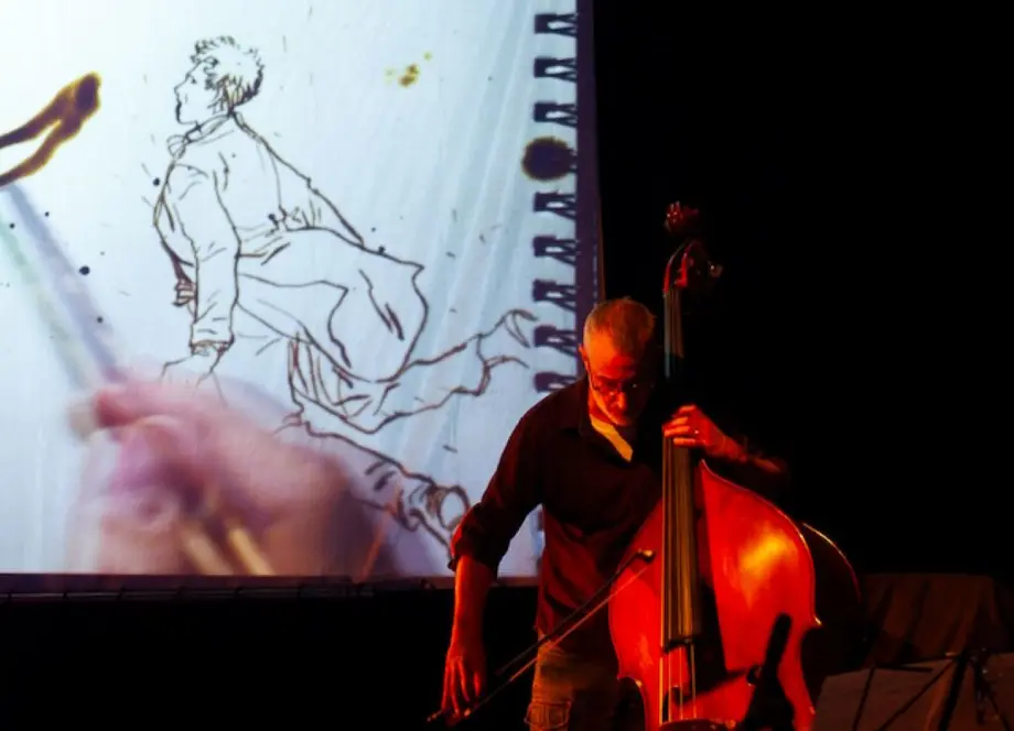 Les voix sont portées par la comédienne Charlotte Braun qui se fait l’interprète d’hommes et de femmes, de leurs perceptions et de leurs sentiments sur la vie d’un individu dont ils ont aperçu un fragment. La contrebasse de François Tison rythme et nappe tous les aspects du voyage : le souffle, les embardées, les silences, les arrêts involontaires. En illustrant en direct les différents tableaux, Damien Cuvillier figure les décors et les visages de l’univers rimbaldien. Tous trois donnent corps à une expérience de l’énigme.