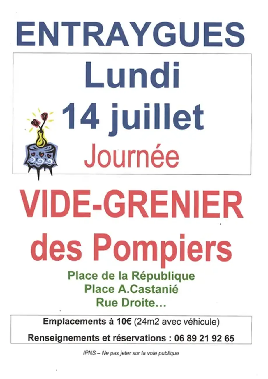 Vide grenierLe 21/06/2026Entraygues-sur-TruyèreVide-greniers sur la place de la République, place A. Castanié, rue Droite, rue du Collège et rue Saint-Georges.
