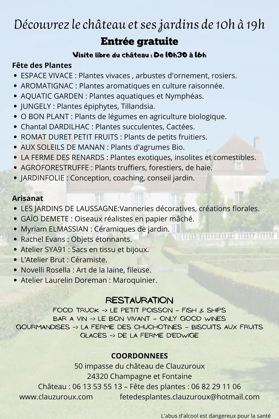 Château de Clauzuroux, 50 impasse du Château de Clauzuroux 24320 Champagne-et-FontaineDates et horaires :