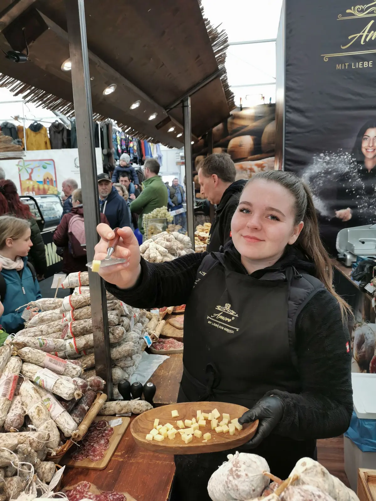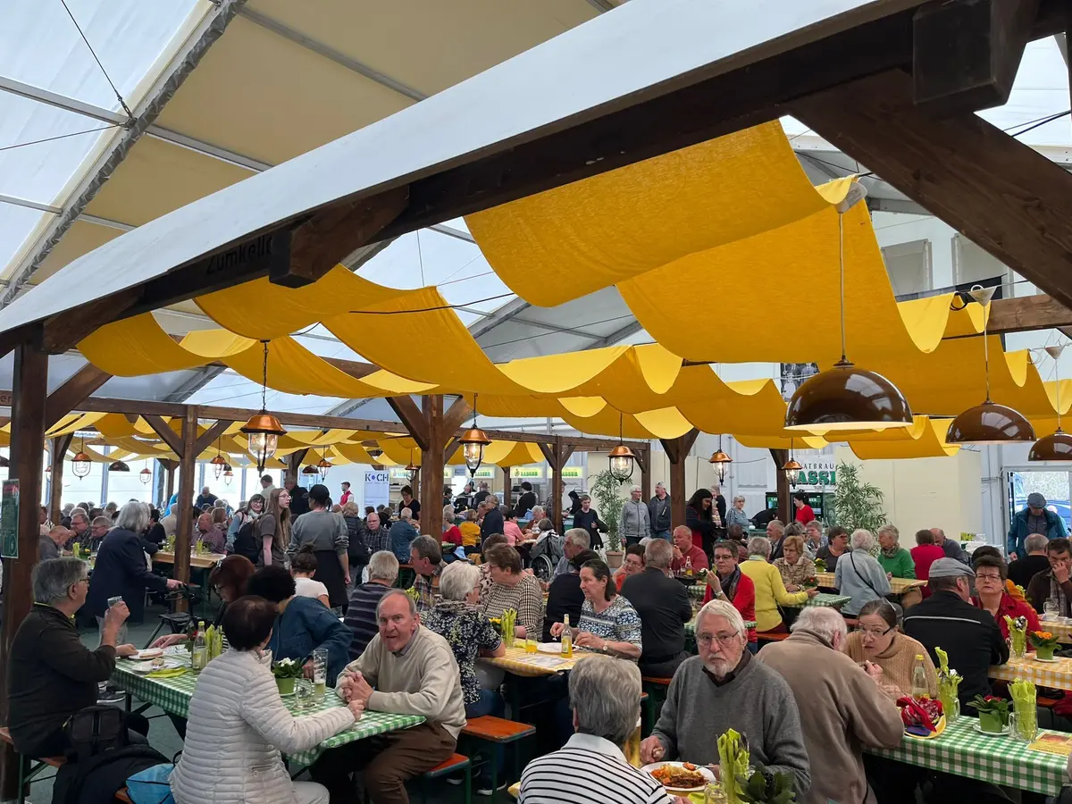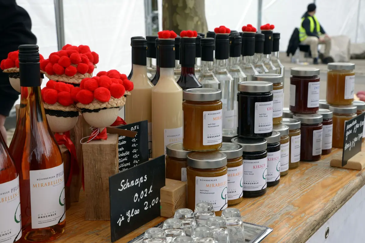 Dans le hall même, les visiteurs peuvent déguster des spécialités de saucisses et de fromages, diverses eaux-de-vie et liqueurs, des gâteaux faits maison, des spécialités locales et régionales ainsi que des vins régionaux.