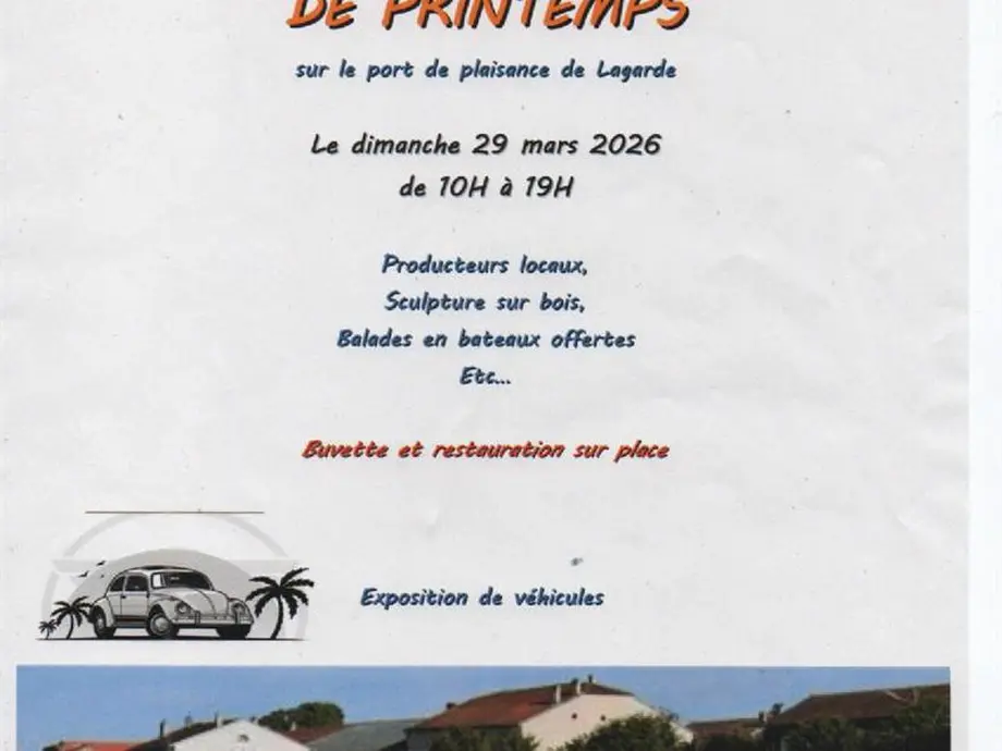 Le foyer rural de LAGARDE, en partenariat avec NAVIG FRANCE, organise son marché de printemps sur le port de plaisance de LAGARDE.