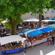 Au centre du village, sous les arbres de l'avenue de Mouret, découvrez le marché st-jeantais tous les dimanches matins de l'année.