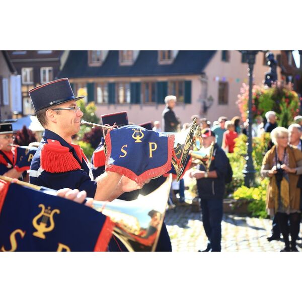 Les sonneurs de trompettes annoncent la FĂȘte des Vendanges Ă Barr