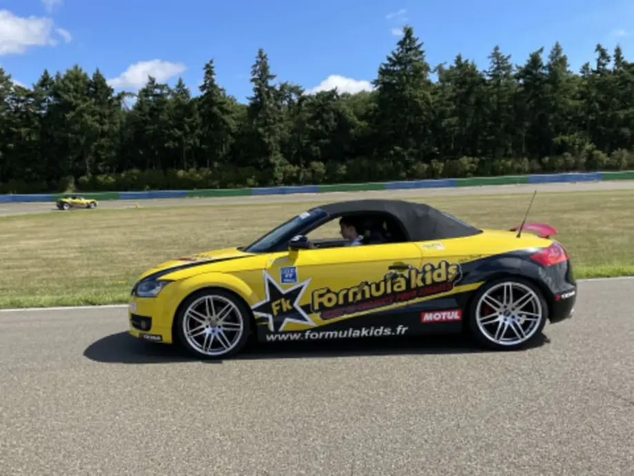 - Après une présentation des caractéristiques techniques de l’Audi TT, c’est le moment de monter à bord, à la place du conducteur ! Votre enfant prend le volant pour réaliser le nombre de tours choisi selon la formule. Au programme : apprentissage de la gestuelle au volant, projection du regard et notions relatives à l’accélération et au freinage.