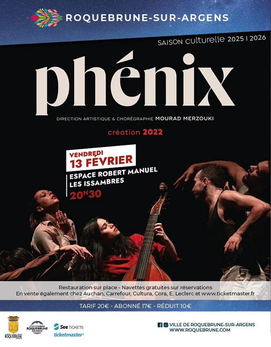 La compagnie Käfig, dirigée par le chorégraphe Mourad MERZOUKI, vous invite à découvrir Phénix, un spectacle de danse très original porté par quatre danseurs et une viole de gambe.