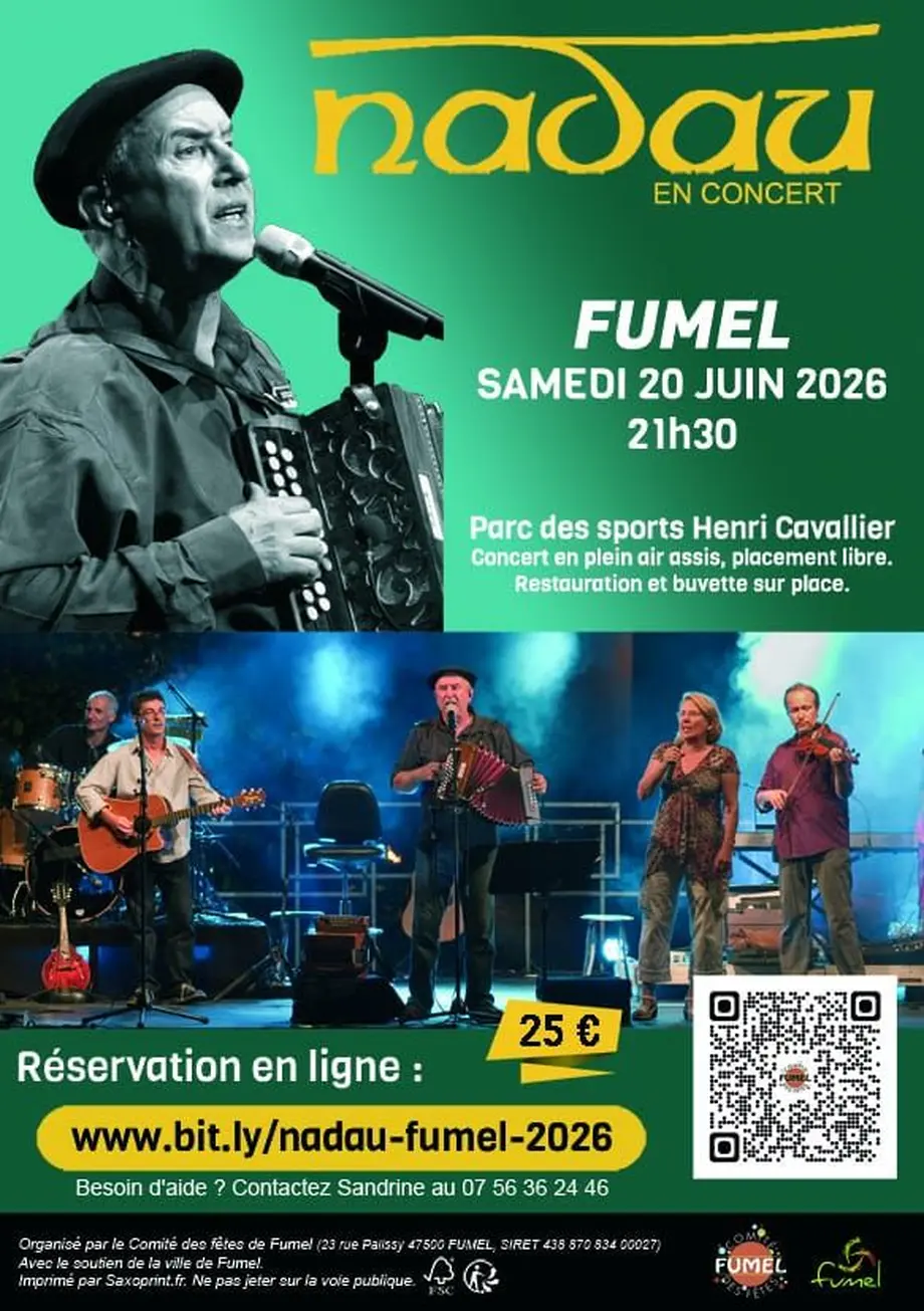 Le comité des fêtes de Fumel, avec le soutien de la ville de Fumel, organise une soirée exceptionnelle le samedi 20 juin 2026 avec le concert du groupe NADAU au grand complet.
