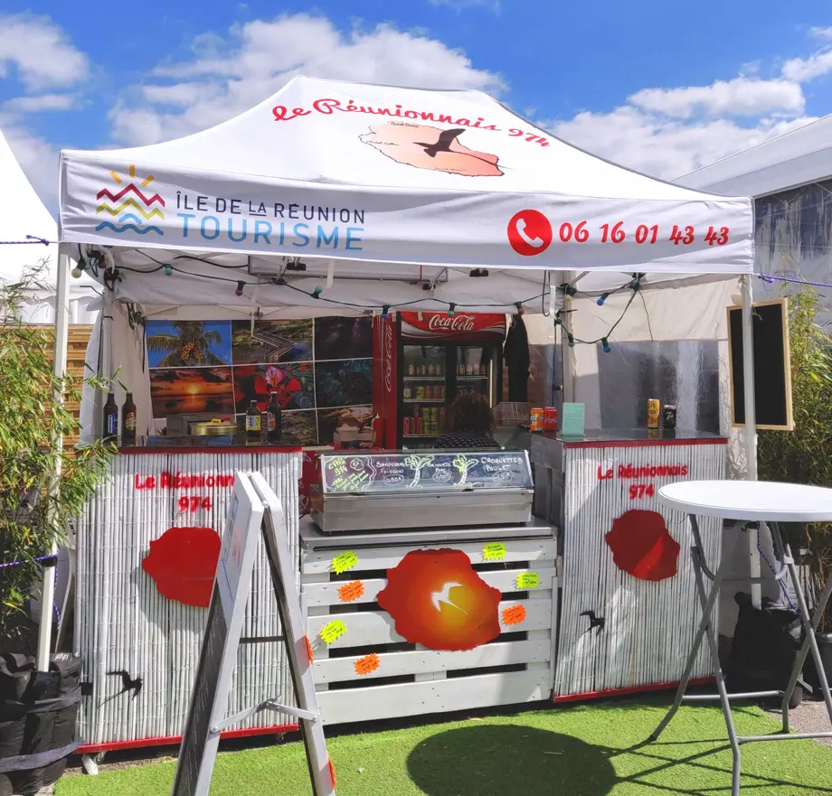 Découvrez les savoureux plats typiques de l'île de la Réunion comme les samoussas de poisson, les beignets de porc ou croquettes de poulet. Toute la magie de la cuisine épicée de l'île est à retrouver sur ce stand! Pour les plus téméraires, la tradition veut que l'on finisse le repas sur un rhum arrangé local.