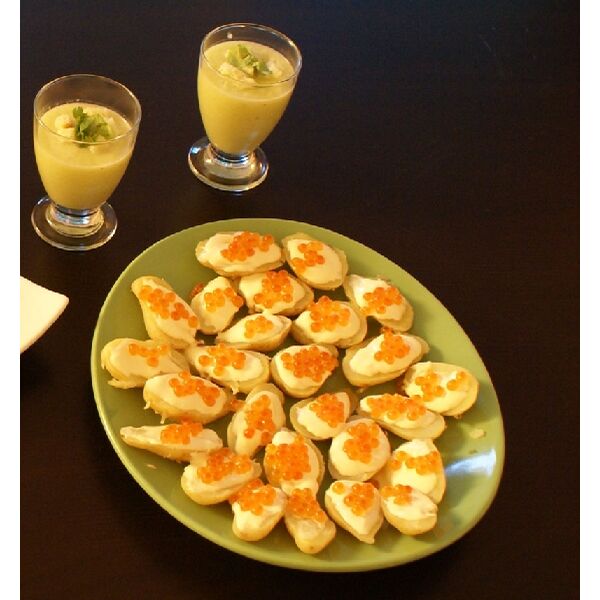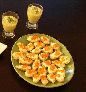 Apéritif original : les oeufs de saumon au wasabi sur lit de pommes de terre rattes