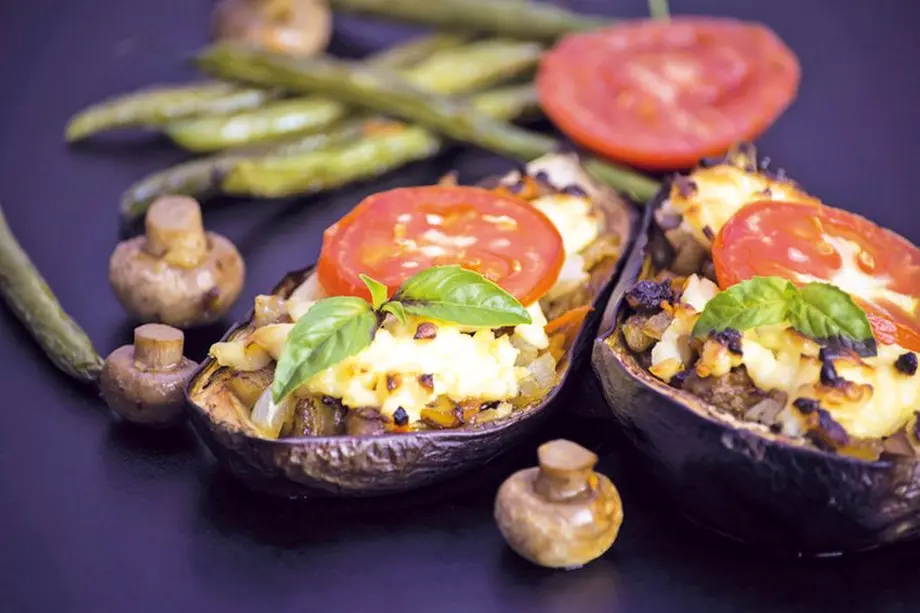 2) Laver les aubergines puis les couper en deux, dans le sens de la longueur. Ajouter un filet d'huile d'olive et les passer au four une bonne demi-heure. Avec les champignons de Paris.