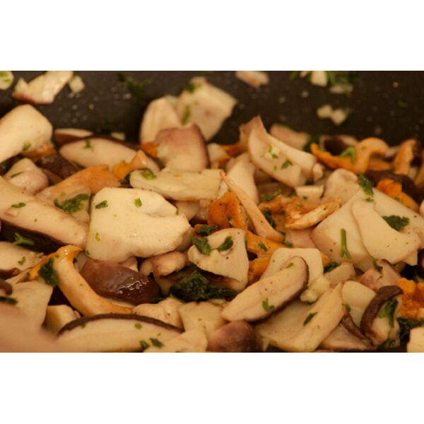 ? Simultanément, faites revenir dans la même poêle les champignons pré-confits.