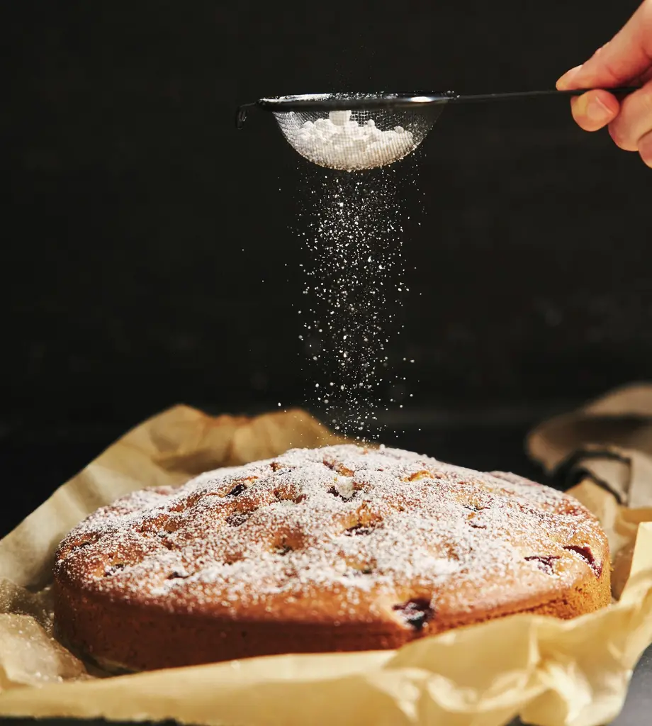 5) Enfournez dans un four à chaleur tournante à 180°, une demi-heure environ. Une fois qu'il est cuit, saupoudrez votre gâteau d'un peu de sucre glace. Et qu'est-ce qu'on boit avec ça ? Un bon café, et c'est le paradis, voyons ! Et les enfants, alors ? Un chocolat au lait !