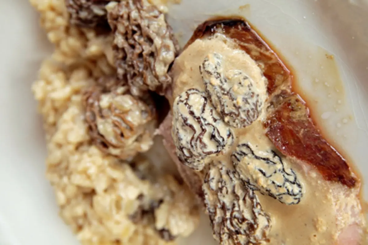 ❹ Rajoutez vos morilles et laissez cuire encore 5 minutes. Puis versez la crème, nous vous laissons juge de la quantité, et repassez quelques instants à feu vif.