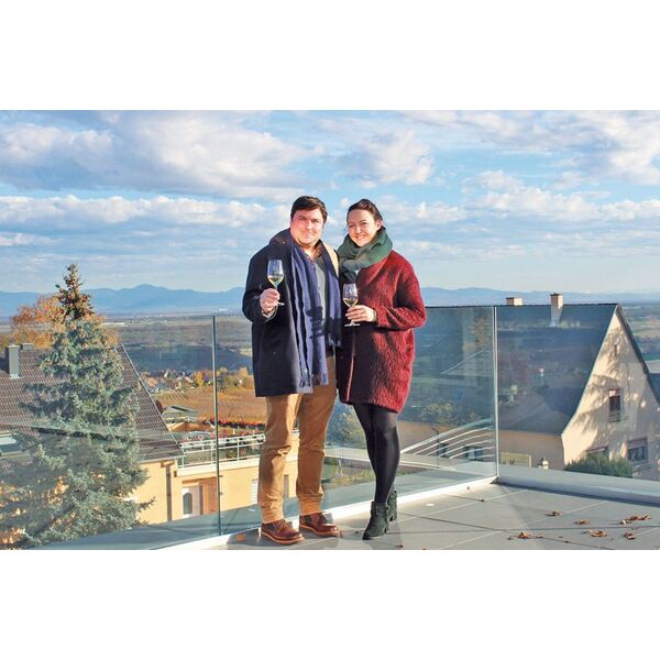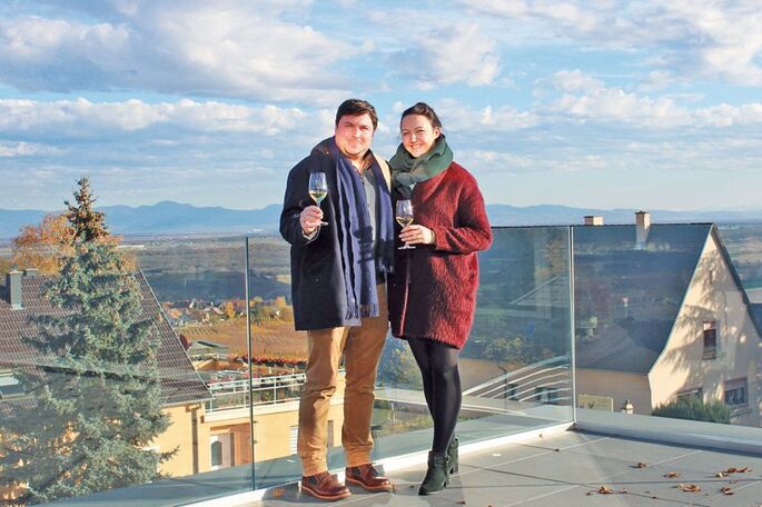 Jacques et Anaïs Cattin, sur la terrasse du Belvédère
