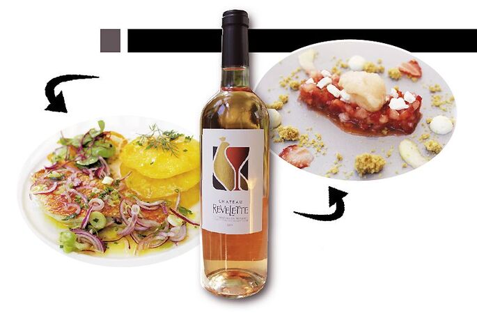 « L'acidulé tout en finesse du Revelette met en relief la chair iodée du rouget », apprécie notre connaisseur. ça fonctionne joliment en bouche ! Le même rosé flirte ensuite avec un dessert taillé pour l'été, un tartare de fraises à l'infusion de verveine, menthe et sorbet pamplemousse. Le Revelette, aux légères notes de bonbons à la fraise en fin de bouche joue alors pleinement son rôle de révélateur gustatif. Admirable. Voilà un rosé gastronomique. ☛ M.O.