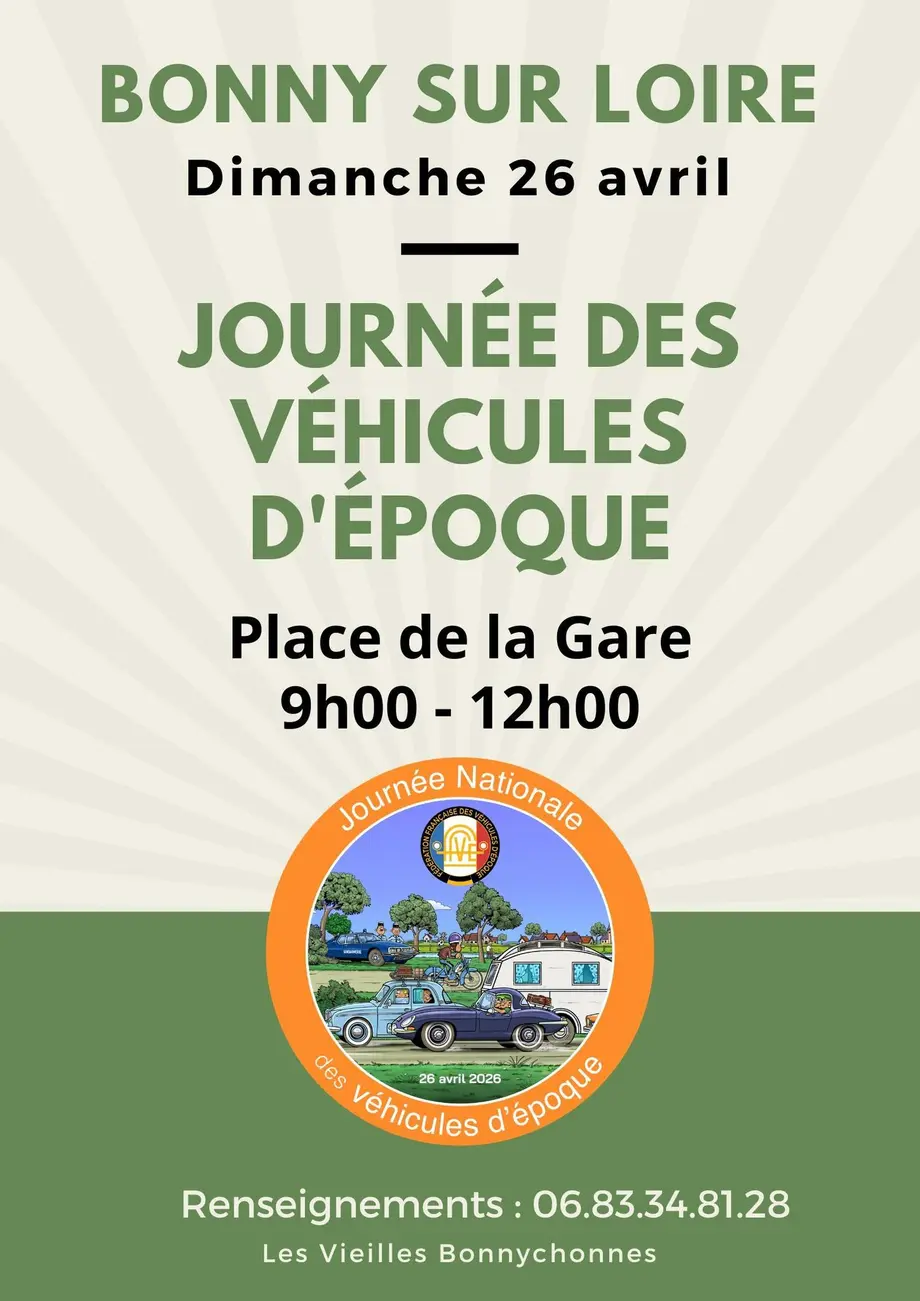 Les Vieilles Bonnychonnes vous invitent à un rassemblement de véhicules anciens le dimanche 26 avril sur la Place de la Gare de Bonny-sur-Loire.