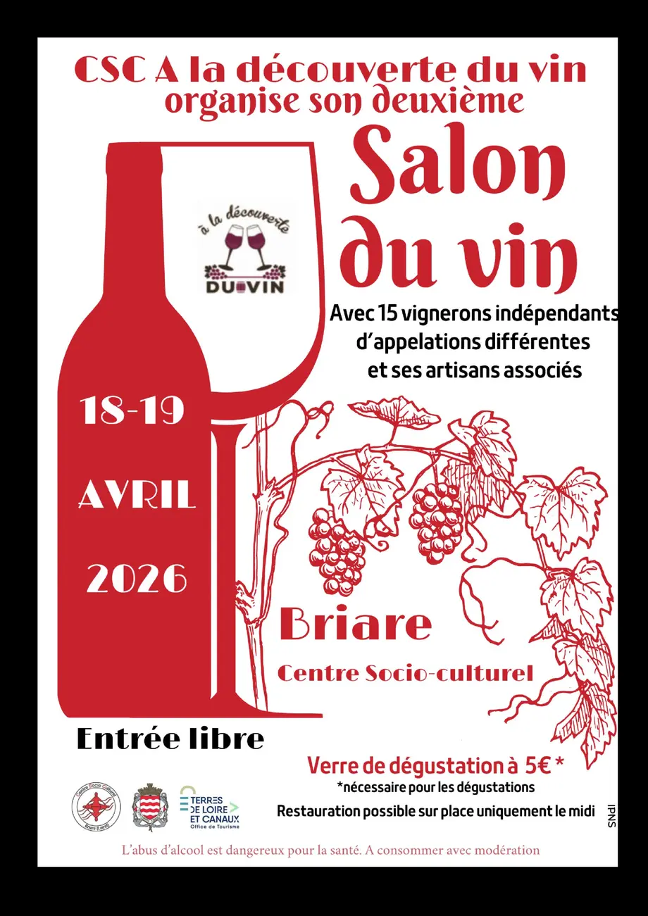 Le club d’œnologie de Briare "A la découverte du vin " organise la seconde édition du salon du vin les 18 et 19 Avril au Centre Socio Culturel de Briare avec 15 vignerons indépendants d'appellations différentes et ses artisans associés.