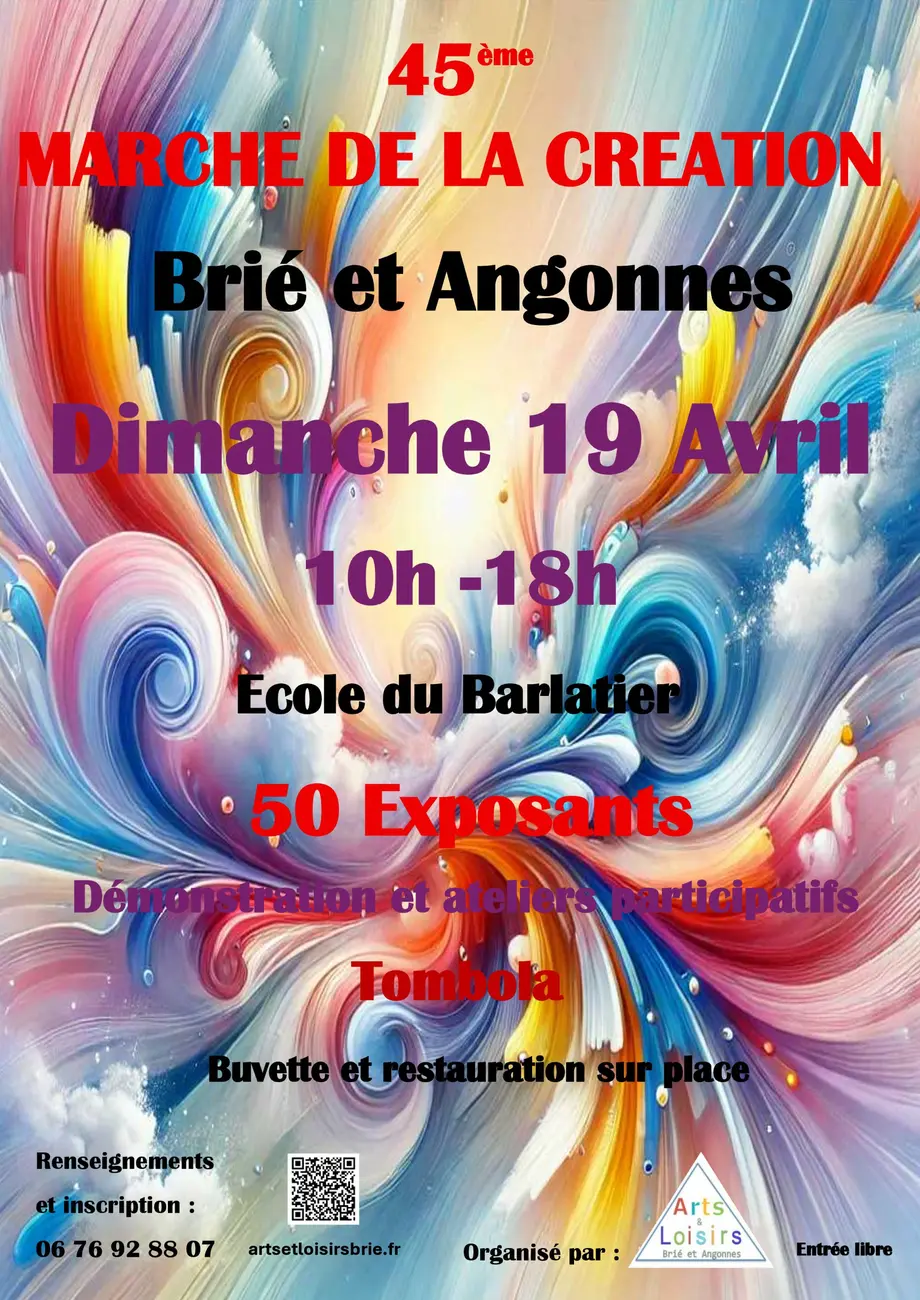 50 artisans vous attendent au 45ème Marché de la création organisé par l'association Arts et Loisirs de Brié et Angonnes pour vous présenter leurs créations. Le dimanche 19 avril à l'école du Barlatier de 10h à 18h.