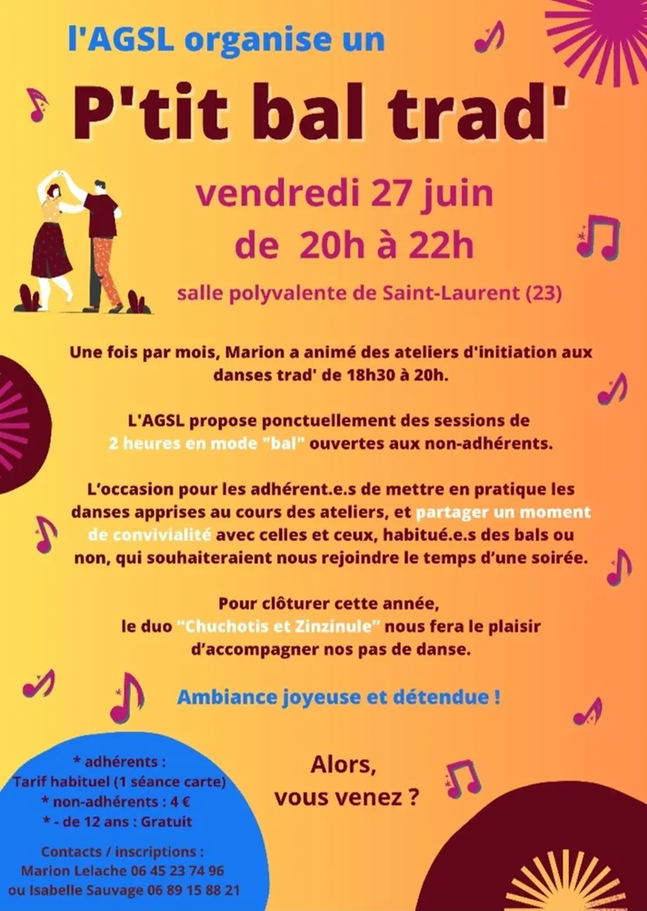 P’tit bal trad’ organisé par l’AGSL, ouvert aux non-adhérents.