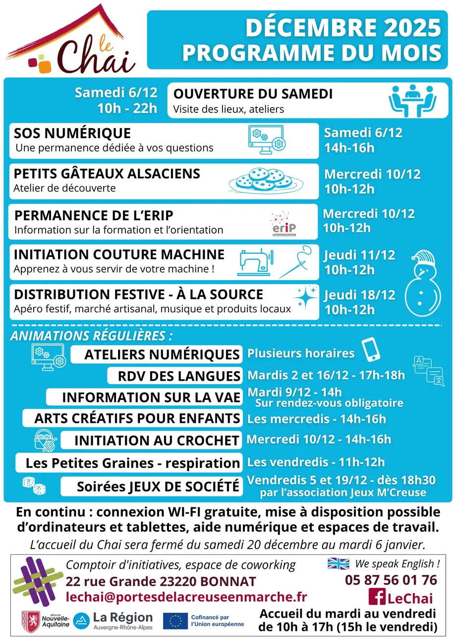 Programme du Mois de décembre au Chai