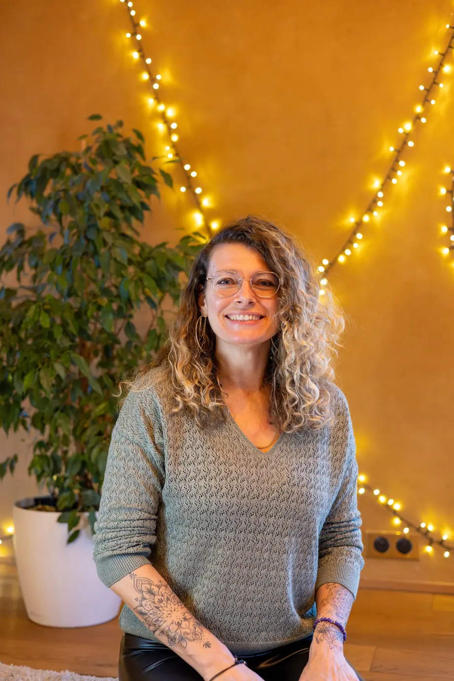 Le soin se déroule au sein d'un salon à l'ambiance intimiste. La décoration, agrémentée de guirlandes lumineuses ornées de quatre cœurs, a été pensée pour créer une esthétique douce et rassurante. Pour un confort optimal en toute saison, la pièce dispose d'un chauffage au sol, assurant une chaleur constante et agréable durant les séances.