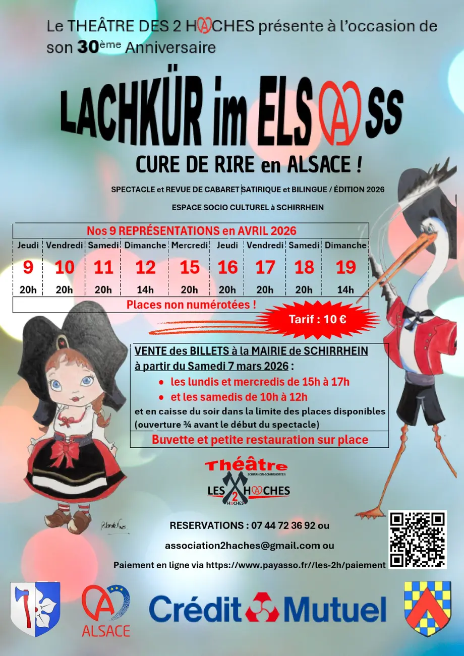 Les acteurs, chanteurs, danseuses de la troupe de théâtre de Schirrhein Schirrhoffen répètent assidûment pour préparer leur nouveau spectacle bilingue de cabaret , événement qui ne se produit que tous les 2 ou 3 ans. La trentaine de comédiens sera sur scène du 9 au 19 avril. L’opus 2026 intitulé, en alsacien, « Lachkür im Elsass », en français « Cure de rire en Alsace a été co-écrit par Jean- Michel Steinbach et Gaby Stoenescu-Vix. Les thématiques sont puisées dans l’actualité politique ou dans des faits de société récents ou plus anciens. Les chorégraphies sont assurées par les danseuses de corps en k’danse. Une chorale, spécialement réunie pour l’occasion, interprétera plusieurs chansons parodiques pour illustrer certains des 20 tableaux que compte ce cabaret. Celui-ci se veut dans la droite lignée de ce que produisait Germain Muller et sa troupe du « Barabli » à Strasbourg. Ce spectacle est soutenu par le Crédit mutuel.
