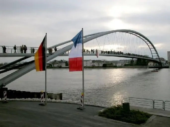 La Passerelle des Trois Pays relie les villes de Huningue et de Weil-am-Rhein en Allemagne. Elle a été inaugurée en 2007.