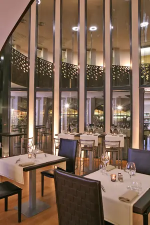 Conseil perso' : gardez de la place pour le dessert, Mourad Ait Balla, pâtissier arrivé récemment lui aussi, confectionne d'harmonieuses douceurs... Excellent Snickers revisité ou rafraîchissante Tartelette aux trois agrumes. Le service est de qualité, mais pas emprunté. Salle aux larges baies vitrées très lumineuse et moderne. Carte des vins de haut vol, le restaurant abritant également la Fédération Culturelle des Vins de France. Menu du marché à 38€. Pour les beaux jours, belle terrasse au milieu de la verdure d'une soixantaine de couverts.
