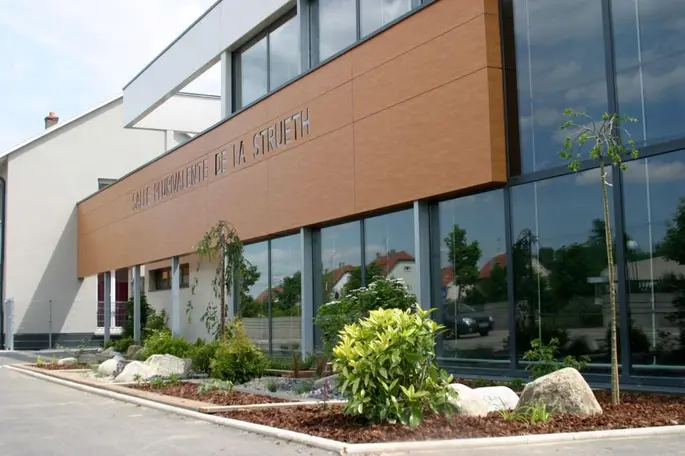 La salle plurivalente de la Strueth constitue un nouvel équipement dans l'enceinte de l'école primaire des Perdrix de Kingersheim.