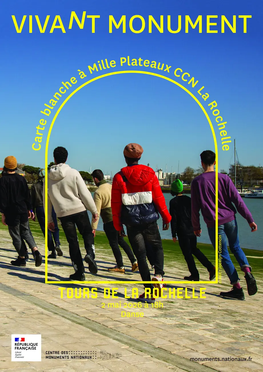 Dans le cadre de Vivant Monument - programmation d’art vivant au cœur des monuments nationaux, une carte blanche est proposée à la chorégraphe Olivia Grandville, directrice de Mille Plateaux le CCN de La Rochelle, le 2 mai 2026, dans les tours de La Rochelle.