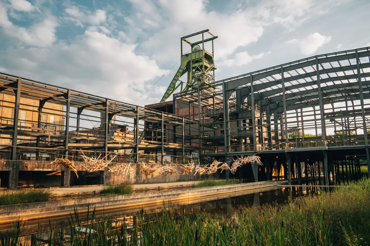Juste à côté se trouve le jardin d'eau librement accessible, qui impressionne par ses bassins en cascade et le couloir de Moïse fumant ; une interaction sans doute unique entre d'anciens bâtiments industriels, une flore variée et l'eau de mine extraite des profondeurs à 32 degrés.